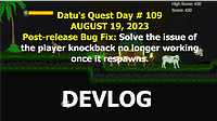 Aug7 Day 99 DquestV1.20.44.0-AddPlayerDeathEffectDebugPlayingInCreditsScene Was able to create audio sound effect for player dying and debug it continuously playing in the credits scene...